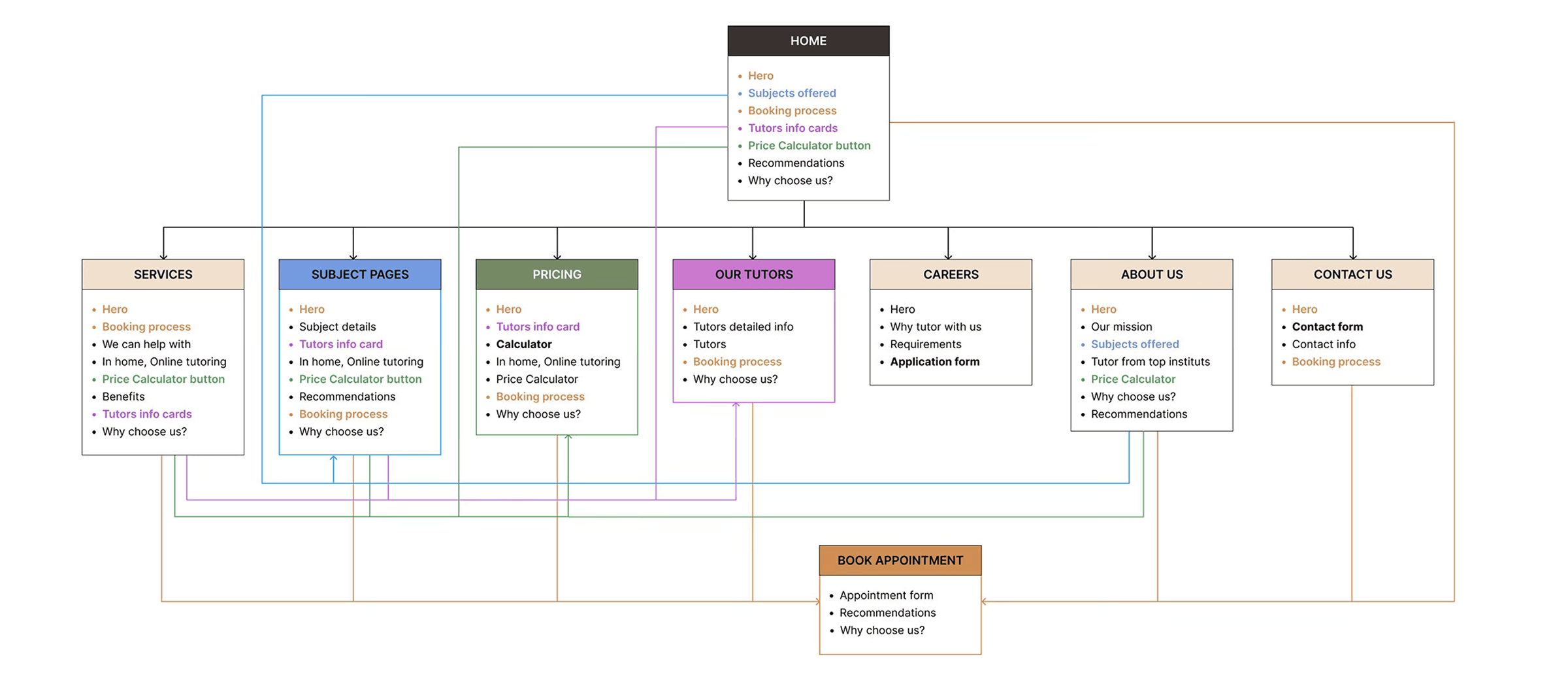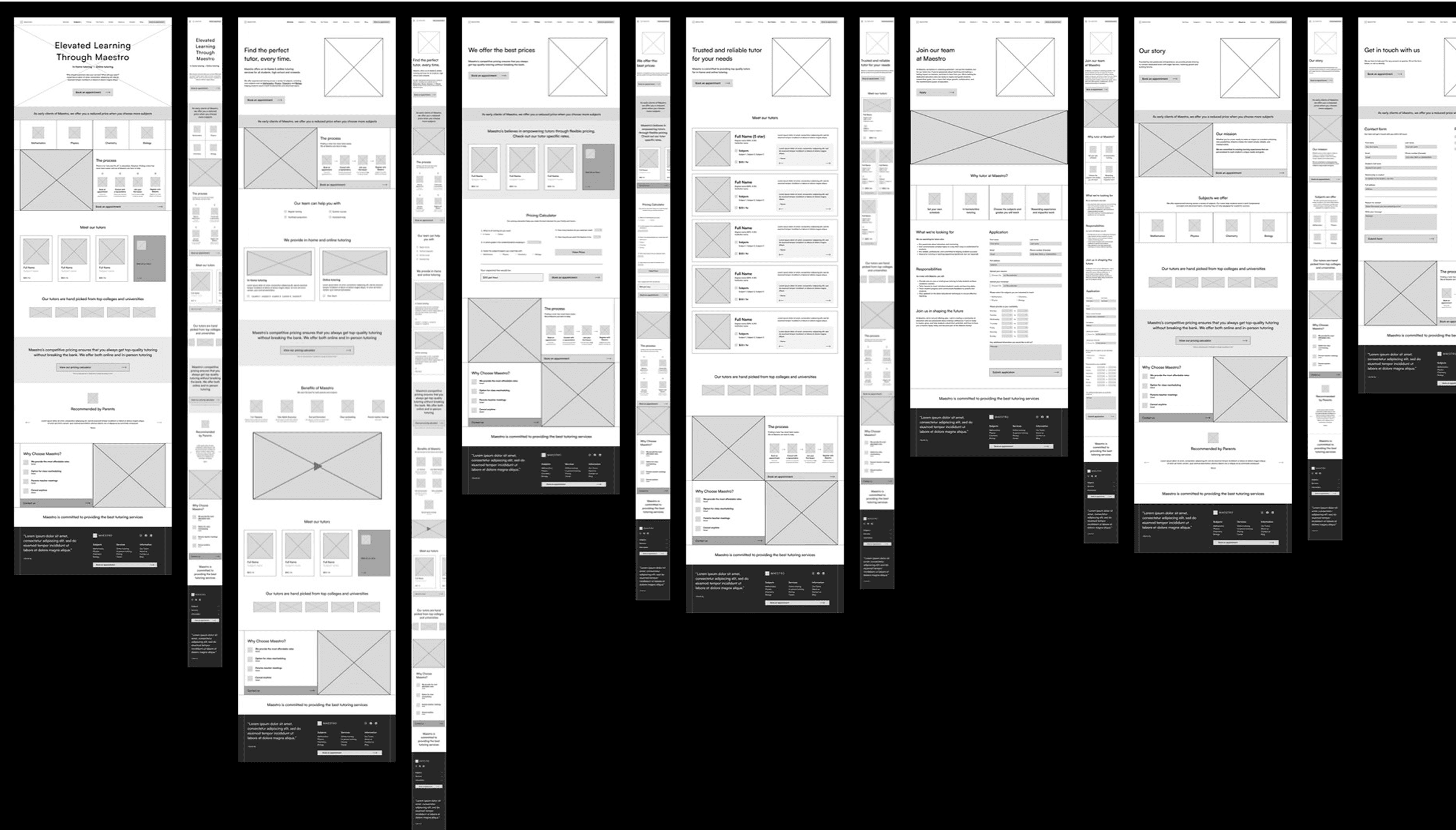 I created low-fidelity wireframes first to explore different ways of structuring the homepage, subjects, pricing, and testimonials. Visualizing how the layout would translate to mobile was also one of our priorities from the beginning, so before diving deep into the visual design, these quick layouts helped me: