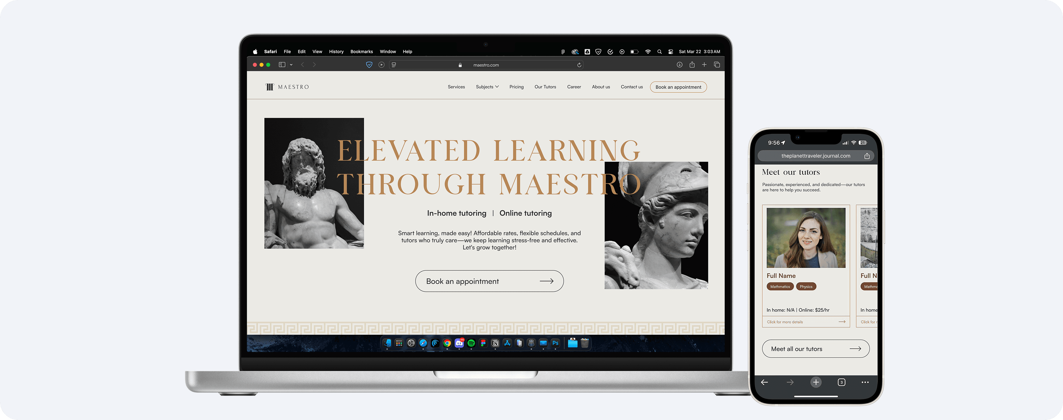 After finalizing the core features, the founders pitched an ambitious idea: an Ancient Greek inspired design that would make Maestro feel like a modern-day academy. My challenge was to translate that theme into a clean, approachable interface where the visuals reinforced Maestro’s dedication and built trust with parents and students.